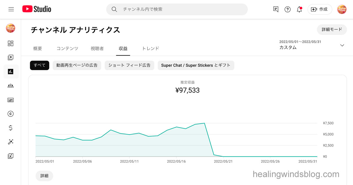 • 5月:¥97,533(5/20に収益化完全停止